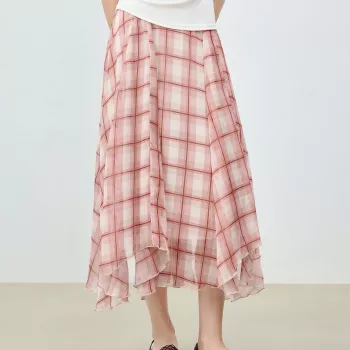 Retro Checkered Midi Skirt with Asymmetrical Hem